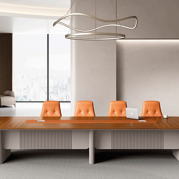 功能齊全:現(xiàn)代簡約大型會議桌不僅注重外觀設(shè)計,還具備多功能性。桌面可能配備電源插座、數(shù)據(jù)接口和其他智能化功能,方便與會者使用電子設(shè)備。線纜管理系統(tǒng)保持桌面整潔有序。